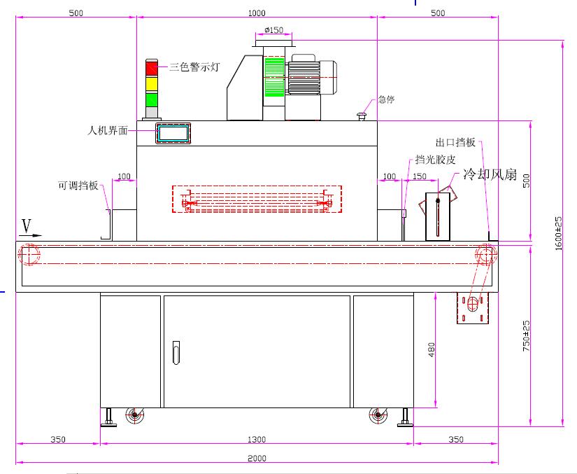 | 1、UV灯:5kw*1支(UV汞灯) | 2、UV灯总长:620mm、弧长:500 |