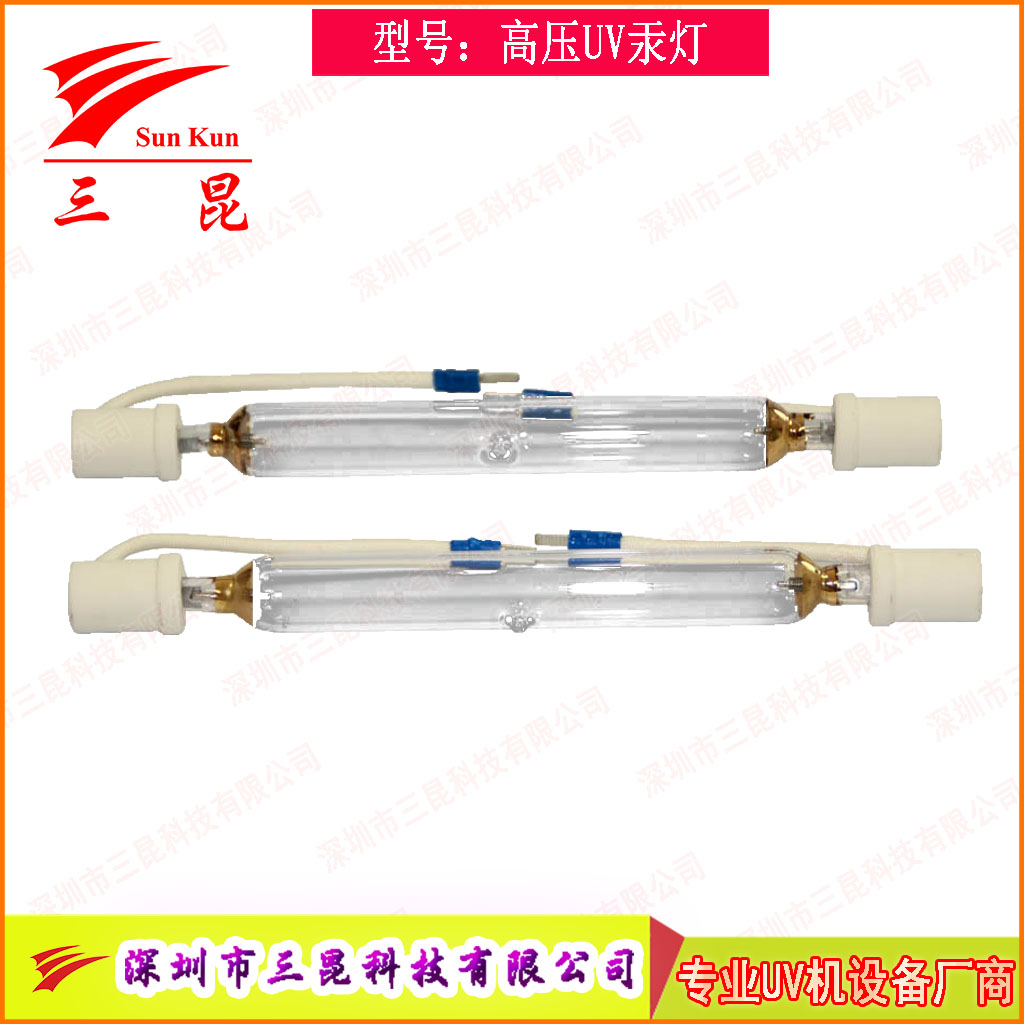 紫外线高压uv灯管属高强度气体放电uv灯,该灯光谱在350nm-450nm之间,主峰值365nm,具有极高的功率密度和有效的紫外线波长,功率有125w-24kw近百种规格。该灯被广泛应用于印刷行业上光、油墨固化、光化学反应、竹木地板、家俱油漆固化、印铁制罐、光盘印刷、玻璃粘接及线路板、半导体、电子行业,紫外线高压汞灯属高强度气体放电灯,该灯光谱在350nm-450nm之间,主峰值365nm,功率有